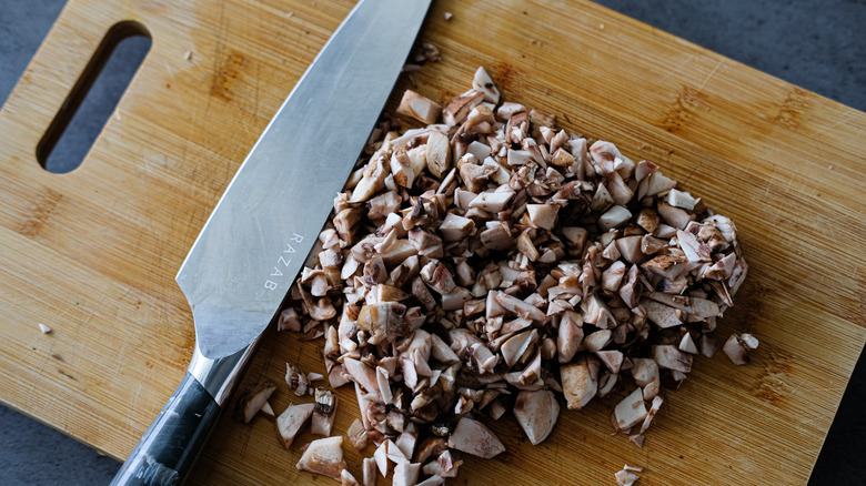 - Add the chopped mushrooms to the skillet and sauté for about 5-6 minutes until they become tender.