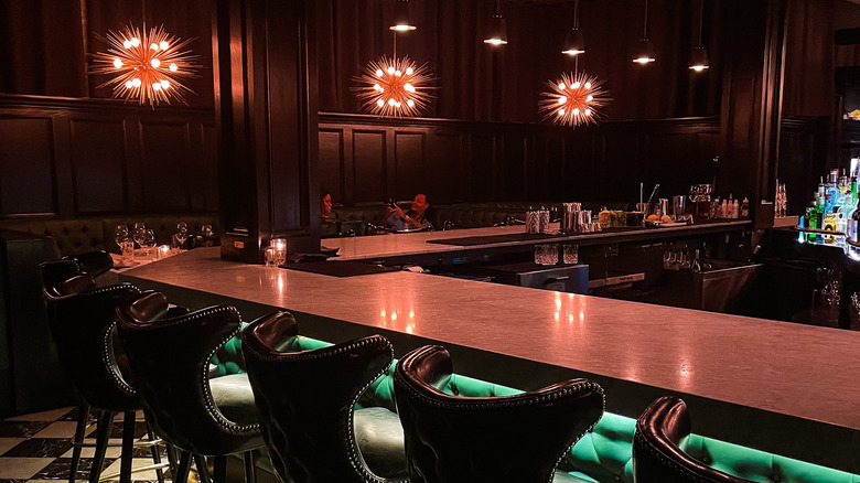 Once inside (look for the regal green door with a small bull marked above it), you'll be swept into a dark and alluring parlor outfitted with a piano, a huge central bar, and swanky booths. The whole space is posh and romantic, which accounts for the numerous dates typically found throughout the room; it's a unique destination for a special occasion. While upscale cocktails and a curated wine list are available, Bull in the Alley is the rare speakeasy that's mostly about meat. Its menu includes hand-cut bacon by the slice, seafood towers, USDA Prime porterhouse, and steakhouse-style sides like crispy Brussels sprouts and creamed spinach.