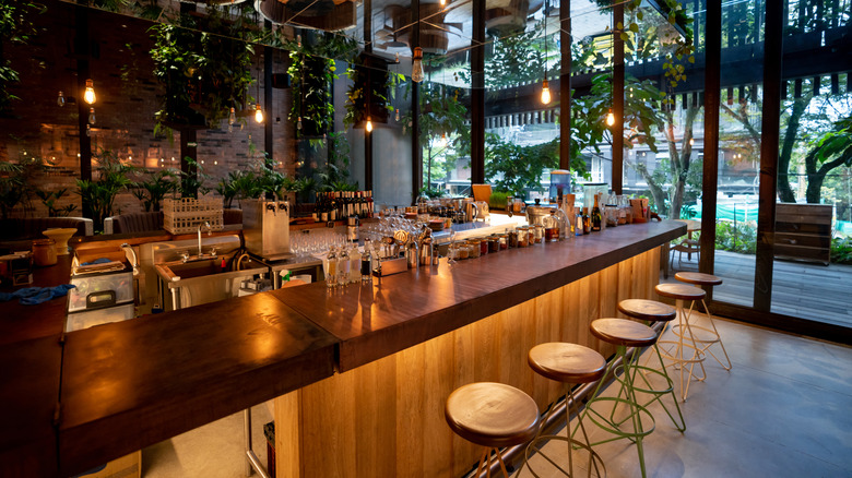 There are more benefits to eating at the bar than just great food, as long as you choose the right location. Depending on how busy the bar is, it's likely you'll receive your food and drinks faster than you would if you were sitting at a normal table. This is because instead of waiting for the waiter to come to you, you can immediately tell the bartender when you're ready for another side, a dessert, or the check. Sitting at the bar is also more intimate than a booth or table, especially if you can snag seats on the corner or side of the bar. You and the person or people you're with will be side-by-side rather than across from each other, making bar seating perfect for date nights.