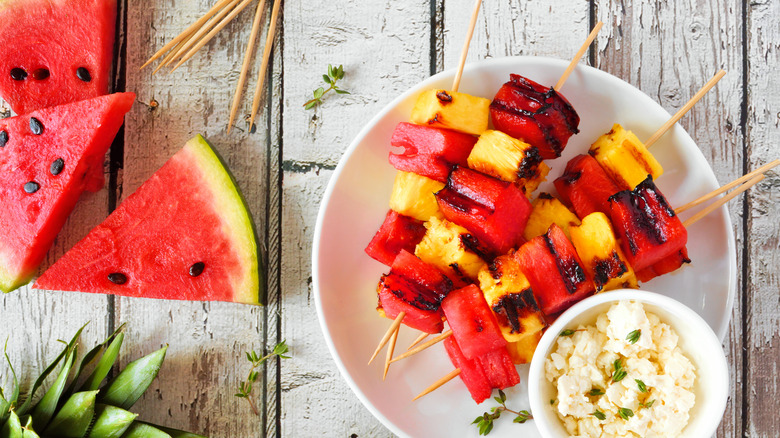 When it comes to the grill, this isn't pineapple's first rodeo. The fruit is notorious for its relationship with the world of barbecue, whether it be the sweet addition to a barbecue sauce, a grilled layer on a loaded barbecue burger, or a sweet and juicy grilled dessert. Most fruits can be eaten both hot or cold, but pineapple tends to hold up particularly well in both categories, along with stone fruits and citrus which just seem to love the heat. However, there are some tips and tricks for grilling fruit, and pineapple in particular requires certain techniques when making its way onto a skewer.
