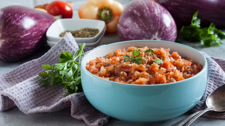 Along with mass produced canned versions, there are plenty of home cooked eggplant caviar recipes. The exact technique and consistency differs depending on who you ask, but it generally involves roasting or sautéing a bunch of eggplant alongside some carrots, tomatoes, and spices before mashing everything into a paste. If you're looking for a similar, slightly fancier recipe, check out our guide to making eggplant caponata.