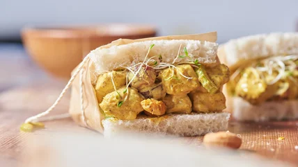 This creamy curried chicken salad recipe has the flavor of your favorite chicken curry thanks to the inclusion of nutty cashews and flavorful curry powder.
