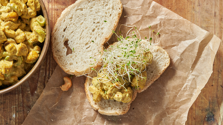 While nothing quite beats a classic mayo-and-celery chicken salad, this recipe for curried chicken salad by developer Michelle McGlinn is a perfect way to switch things up a bit. It's not exactly spicy, but has the distinct flavor of your favorite chicken curry thanks to the inclusion of nutty cashews and flavorful curry powder. The grapes are a pleasant, sweet surprise that add a little bit of crunch and brightness to the dense curry flavor. And even though it's made from scratch, this chicken salad comes together easily so that lunchtime can still be a breeze. Looking for a new way to enjoy chicken salad? This recipe is sure to hit the spot.
