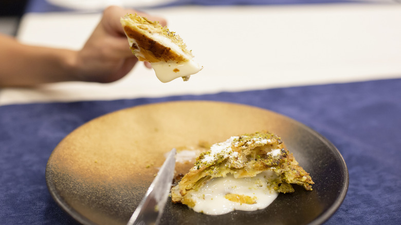 Katmer has a storied link to Turkey, with its creation dating back to at least the 14th century. Multiple renditions exist across the country; the filling alters based on regional produce. However, few varieties are more celebrated than the pistachio-filled katmer from Gaziantep — it's the most identifiable version of the dish.
