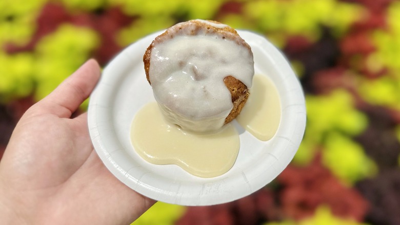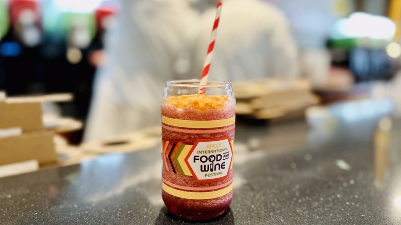 The Frozen Fusion drink is another must-try at the fest, especially for those looking for a refreshing respite in the warm Florida climate. This drink stands out not only for its flavor but also for its vibrant red hue that immediately catches the eye. Plus, it comes served in a fun cup and is topped with orange Dippin' Dots style ice cream, offering a fun, playful twist to the classic frozen drink aesthetic.