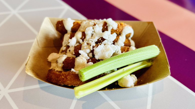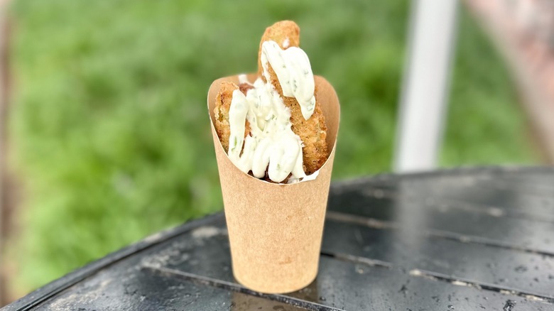 The tenders have a remarkable buffalo flavor that fans of the classic dish will appreciate. Unlike some tenders that can be dry, these are saucy and tender, making each bite a pleasure. Despite this dish's location at the festival (in the Brew-Wing Lab), the tenders are much more akin to a chicken nugget than a wing, a distinction that plays well with their texture and flavor.