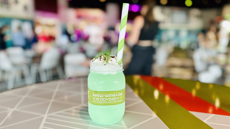 A standout and perhaps the most adventurous offering at the 2023 Walt Disney World's International Food and Wine Festival is the Pickle Milkshake from the Brew-Wing Lab. In this unique offering, the punchy dill taste is prominent but ingeniously counterbalanced with a touch of vanilla. Beyond the adventurous flavor profile, this Pickle Milkshake deserves praise for its visually stunning presentation.