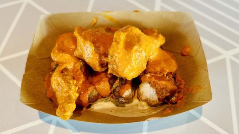 It's important to note that this is not your typical buffalo wing spice. The heat comes from the scotch bonnet pepper, which boasts a Scoville level of around 300,000, according to a chef we spoke to on-site. That means these wings are seriously hot, but don't let that deter you. The curry adds depth and complexity to the wings, balancing the heat with robust flavor.