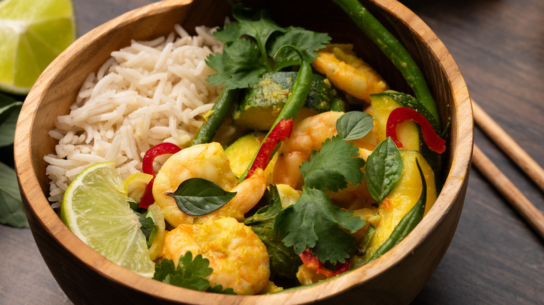 Thai curry is one of the most popular types of curry in the world. This fresh, aromatic Thai shrimp curry from recipe developer Jennine Rye is a great example of yellow curry, with turmeric giving the dish that distinctive hue. "I love how this curry is packed full of fresh and fragrant flavors; it's a really wonderful mixture of fresh, bright ingredients, warming spices, and rich creamy sweetness," Rye describes. She also appreciates the fact that the curry works well with the shrimp "without overshadowing it," and she enjoys the added crunch that the zucchini and green beans provide.