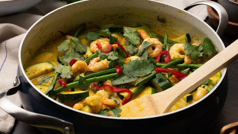 When it comes to serving, be sure to garnish your curry with Thai basil and extra cilantro for an herbaceous addition. And, like most types of curry, this one pairs especially well with rice or noodles, which will add some starchy goodness and help absorb all of that delicious liquid. Whichever way you serve up this curry, something tells us that you'll never want to return to premade pastes after enjoying the fresh (and easy-to-make) one that this recipe has to offer.