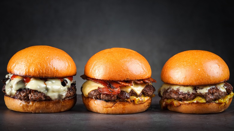 Now, although Alton Brown's recipe is actually for tiny little sliders, there's no reason you can't use it for full-on burgers, with some adjustments. The basic idea is to roll out your ground beef on a surface until flat, then spread "as much yellow mustard as you can stand," on top, as he says on his YouTube channel, sprinkle in some garlic powder, and then fold the meat onto itself once. After this step is complete, you can cut your burgers into whatever shapes or sizes you like before steaming them over chopped onions, with some American cheese on top, until done. This might not be the same as slathering mayo on top of your prepared burger patty, but that's quite alright, as this way, the flavor of the mustard will be more powerful throughout the dish.
