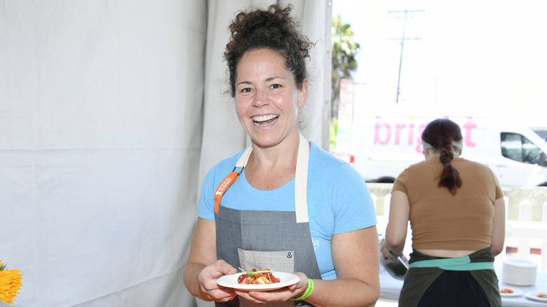 Another green go-to burger ingredient for Giada De Laurentiis is pesto, which she mixes into her burger patty along with Parmesan, salt, and pepper. She also combines fresh pesto with some mayonnaise, which she then spoons onto the mozzarella slice that tops the burger. Then, all you have to do is add a slice of fresh tomato to make this a caprese burger.