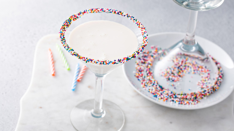 As the Funfetti generation continues to get older, their nostalgic love for birthday cake's flavor and the feelings it evokes are finding new ways to evolve. Since 2017, as revealed by Nielsen, via Vox, birthday cake-flavored foods like jelly beans, pretzels, and protein bars, and cocktails have been up in sales by nearly 30%. Recently, even Kit Kat released a limited edition birthday cake candy bar.