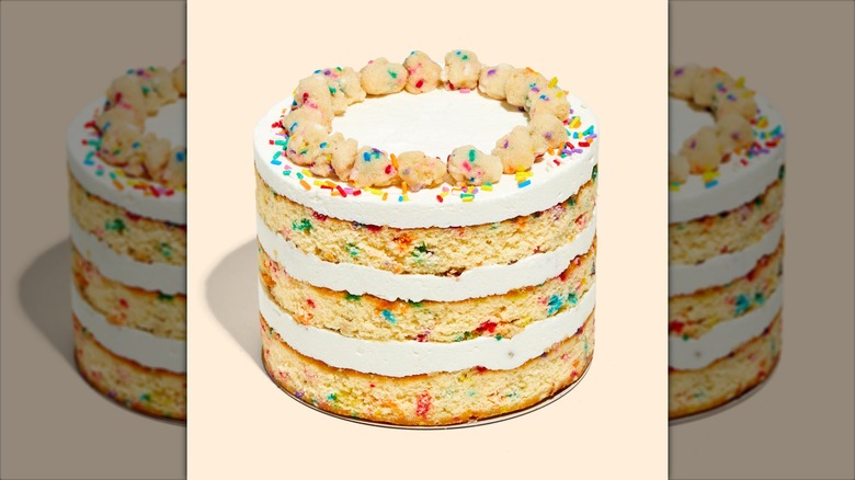 Tasting Table spoke to Anna McGorman, Milk Bar's VP of Culinary, about this iconic treat. "The Birthday Cake (soaked liberally with clear vanilla extract-spiked whole milk) is sprinkle-studded, fluffy and buttery," she explained. "The frosting is meant to drive a bit of tang (thanks to some cream cheese and sneaky amounts of buttermilk powder/citric acid) for balance, while the crumbs are there for texture and richness."