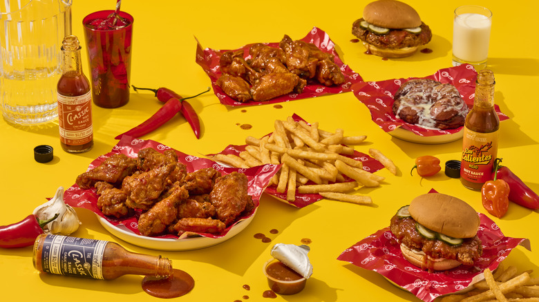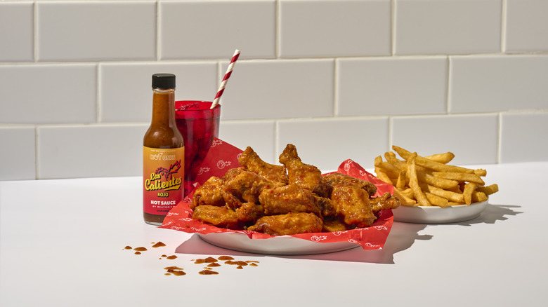 Fans can order six or 12-piece chicken wing meals or sandwiches featuring Hot Ones' three sauces (Los Calientes Rojo, Classic Chili Maple, and Classic Garlic Fresno) and can pair them with french fries to make it a meal. To cool things off for dessert, the brand is also offering an apple fritter topped with sweet milk. The delivery service is made possible through a collaboration with Mealco, which provides delivery-only businesses with kitchen spaces to reduce overhead in the wake of the pandemic.