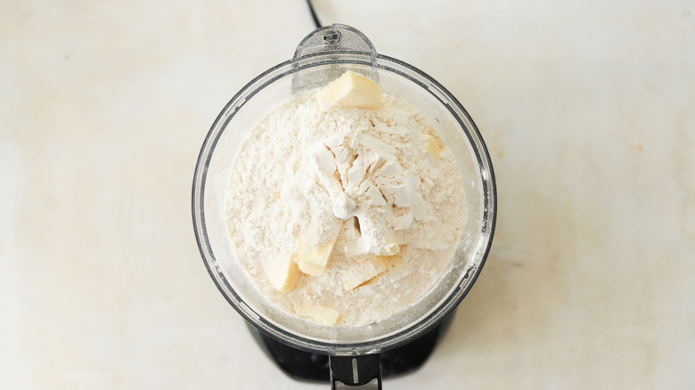 - Prepare the dough by combining the flour, butter, shortening, turmeric, and salt in a food processor. Pulse these ingredients until a fine crumb forms.