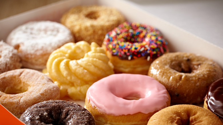 Compared to cake donuts, which come in a wide variety of flavors, raised donuts typically aren't as versatile. They have their own perks, though. The pillowy, pliable dough makes them easy to fill with jellies, creams, and custards, and you can always get creative with the toppings.