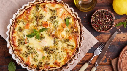 First discovered on the Banda Islands of Indonesia in the early 1500s, nutmeg has long been considered a luxury spice prized for its warm, nutty flavor. Though we love it as a component of sweet spice blends, like pumpkin pie spice or quatre épices, it can play a part in properly seasoning a savory dish just as well. Nutmeg is a key ingredient of a rich béchamel, slicing through the dairy elements to impart a touch of sweet heat. In a similar way, nutmeg can add nuance to your eggy quiche, introducing a surprising and comforting aroma. It works as a complementary spice because it cuts through the richness of the quiche's ingredients without overpowering them. So how should you go about adding nutmeg to your go-to quiche recipe?