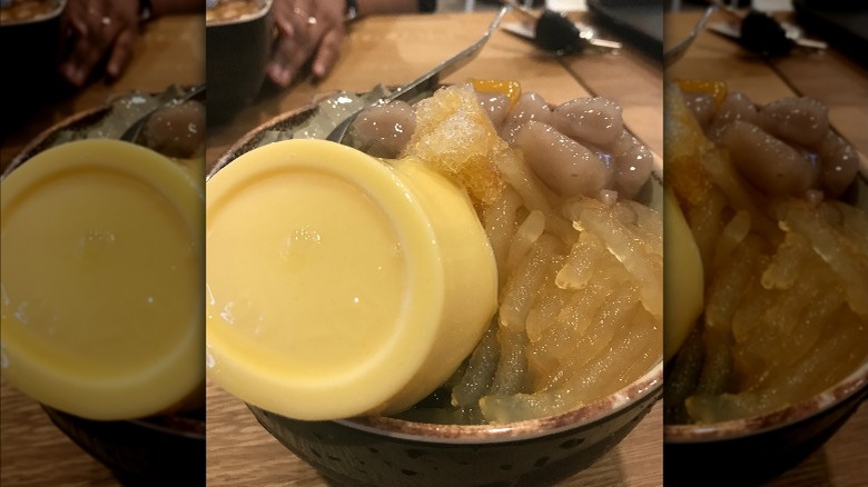 Having undergone evolution and transformation over centuries across Asia, silky egg pudding is now being imaginatively reinterpreted by dessert enthusiasts globally. You can now enjoy it generously topped with various boba drink accompaniments such as lychee jelly, brown sugar boba, jelly noodles, or mochi. These chewy additions provide a delightful texture contrast to the smooth egg pudding. It can also be a creamy, fun addition to your boba drinks. Moreover, egg pudding is a sought-after topping in shaved ice desserts like kakigōri and bingsoo. When drizzled with sweetened condensed milk, the combination is divine.