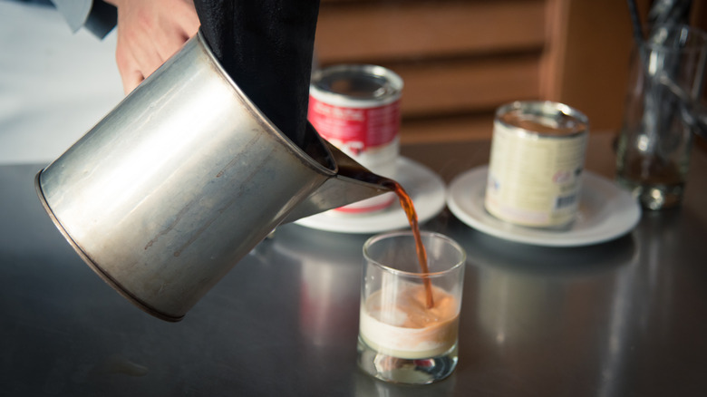 While there are some kopitiams beginning to crop up in the United States, they are few and far-between. As such, your best bet for trying the beverage is to make it yourself. First, brew your tea by steeping the leaves in hot water according to their brewing instructions. Next, add the sweetened condensed milk and stir until fully integrated. At this point, you can remove the tea leaves from the mixture, either by taking out the tea bags or by straining the liquid if you used loose leaf tea. Next, add an equal amount of coffee as you have tea to create a one-to-one ratio. Let the entire thing cool, then pour it over ice and enjoy.