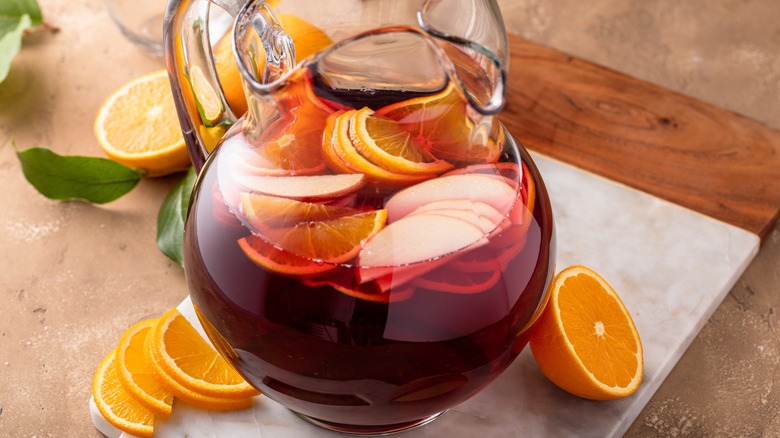 Most sangria we see in restaurants across the U.S. and especially in Spain are made with red wine and come in that deep, dark, burgundy color. But there are plenty of sangria recipes out there that call for white wine or rosé, and they're honestly just as good.