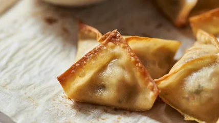 Most grocery stores sell wonton wrappers these days, especially if they already sell tofu and egg roll wrappers. Wonton wrappers have to be refrigerated, so look for the square wrappers in the produce aisles somewhere near the tofu and fermented vegetables. Square wonton wrappers work best here, but in a pinch, you can also use round dumpling wrappers. If swapping, note that the dumpling wrappers won't get quite a crisp.