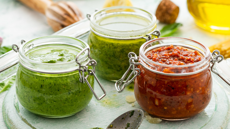 Despite the fact that you can use any variety from a zesty arrabbiata to herbal pesto or even a creamy squash sauce, we'd caution against overly chunky options with bits of bacon or huge pieces of tomatoes. These varieties won't adhere to wings as effectively, and might even run the risk of burning should you plan to coat your wings before they hit the grill, oven, or fryer.