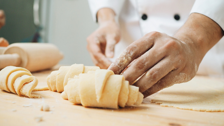 Deciding between European-style and American-style butter is particularly important when baking pastries. It works well in certain dishes but can overpower others. European-style butter is best reserved for laminated pastries like croissants, danishes, cinnamon rolls, and pie crusts. Since the butter contains more fat and less water, it's easily incorporated into the dough and creates delicate yet distinct layers of lamination. This is how laminated pastries get their classic features, such as a buttery taste, flaky texture, and an overall mouthwatering bite. One aspect to be cautious of when shaping pastries is that European-style butter has a low melting point. The heat produced by your hands may cause some issues when working with the dough, but you can avoid this problem by chilling your dough beforehand.