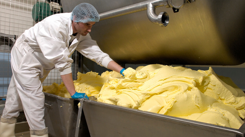 This is particularly noticeable when it comes to artisan butter makers in Europe. They follow stricter regulations from start to finish of the butter-making process. For example, close monitoring of the cows' diets, milk production, and cream fermentation process takes place across many countries and cities. This ensures consumers are purchasing high-quality products that are made using time-honored manufacturing methods. The resulting butters are generally raw, uncultured, and preservative-free — which means they're not as widely available since the cream can spoil more quickly. Still, artisan butter makers like the French Jean-Yves Bordier sell their spectacular butter around the world.