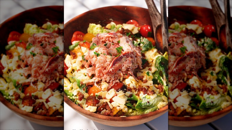 To understand the pricing, it's important to look at the primary ingredients. Duryea's shared with Parade that its seafood version of the Cobb salad contains the items we listed previously and also more specifically, sharp cheddar, housemade tarragon dressing, and eight ounces of lobster meat. However, while most of these ingredients can vary in price depending on where you shop, it's really the crustacean portion that largely tips the expense scale. On average, a 1.5-pound lobster will yield six to eight ounces of meat. The retail market price today in Montauk for a 1.5-pound lobster is about $18 per pound. So, we're looking at $27 to $36 to get the requisite half-pound of lobster meat.