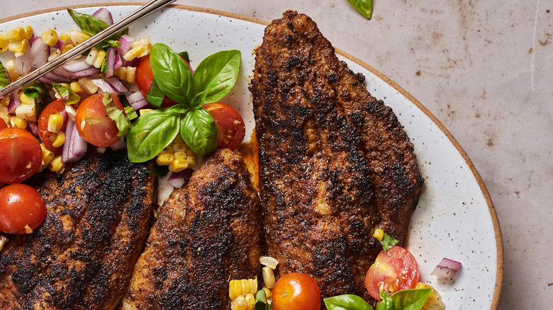 Serve the blackened catfish with the corn salsa. To tame heat, serve with lime wedges.