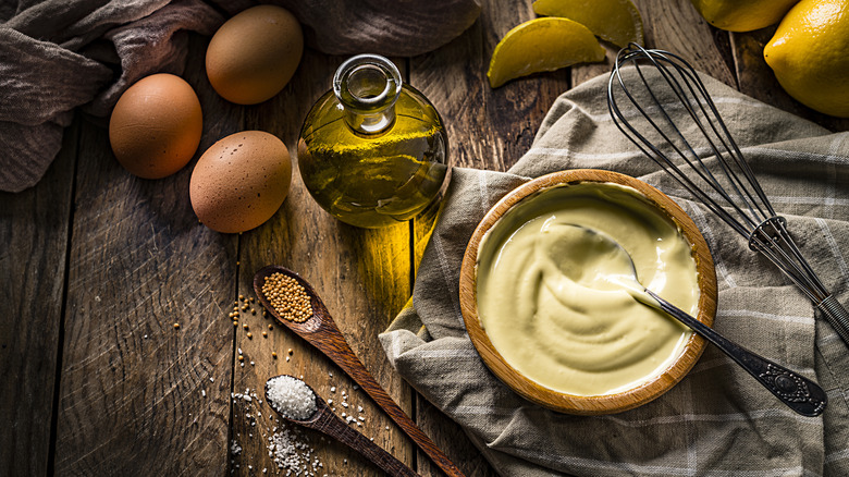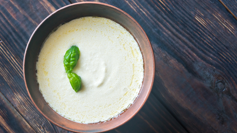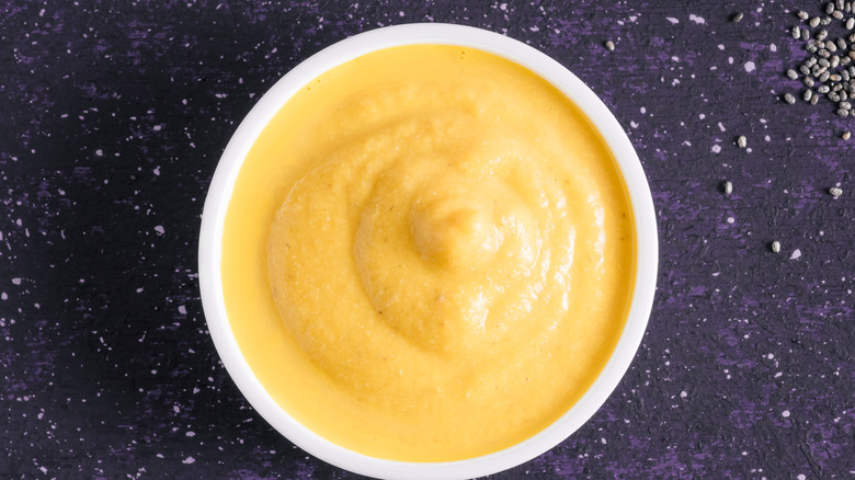 We're not sure what this sauce has to do with a bohemian lifestyle, but we can say that it's unconventional — if only because it's served cold. This béchamel variation is made by adding egg yolks, tarragon, vinegar, olive oil, and mustard to chilled béchamel. If you're looking at the ingredients list and thinking that it sounds like béchamel with mayonnaise, you'd be right. Both sauces contain egg yolks, vinegar, olive oil, and mustard. As you might expect, it's a pretty thick sauce. That's not necessarily a bad thing, though. In fact, its smoothness and richness make it the perfect complement to chilled fish or poached salmon.