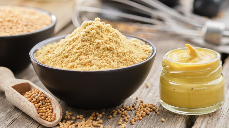 If you don't have dry mustard laying around the house, you can use Dijon mustard instead. For this option, add two tablespoons of mustard after adding milk to the roux. Whisk all of the ingredients together, then season with nutmeg, salt, and pepper. Cook the sauce for several minutes until it thickens. Like a lot of béchamel sauce variations, this one is incredibly versatile. For example, you can use it on top of fish, chicken, pork, or lamb. It's also a lovely addition to a croque monsieur sandwich.