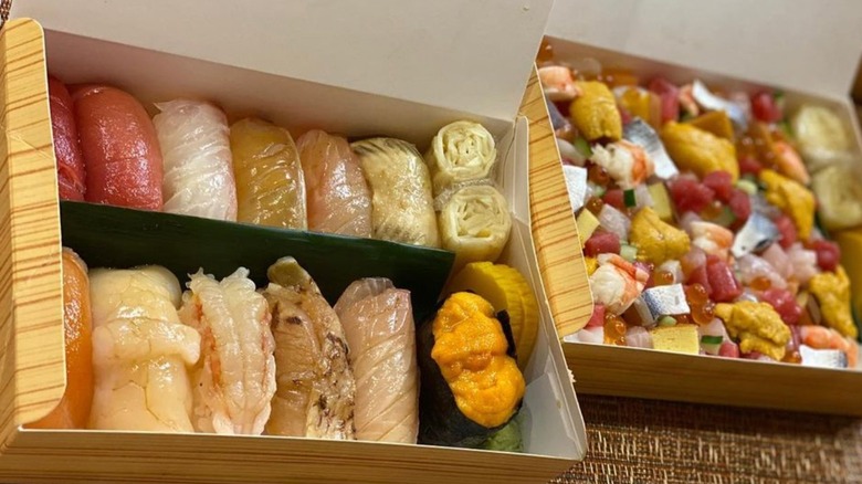 The chef's choice sushi box is a great option for people seeking a quick yet elevated lunch and is available from 12:00 p.m. to 2:00 p.m. Monday through Friday. If you're hoping to have a nice dinner at home, the chef's choice sushi box can also be ordered Monday through Saturday from 5:30 p.m. to 9:00 p.m.