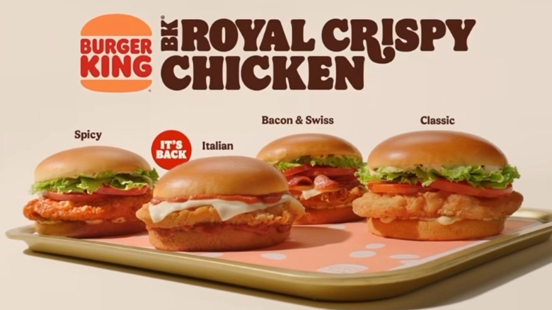 In addition to National Fried Chicken Day, the sandwich's comeback might also be a foray into nostalgia marketing as a part of B.K.'s recent comprehensive brand overhaul. After the Impossible Whopper of 2019 failed to fetch B.K. an enduring fanbase, the company set its sights on a $400 million makeover. Late last year, Restaurant Brands International (parent company of Burger King) announced a multi-dimensional plan to revitalize the chain and return it to its former glory — and so far, the effort has been paying off. In Q4 2022, same-store sales enjoyed a 5% increase. B.K. has since been testing a rotating door of menu items and marketing campaigns in the name of contemporary relevancy and efficiency. For instance, the Ch'King Sandwich (which has since been retired) took 21 steps to prepare, and the newer Royal Crispy Chicken takes five. By April 2023, Burger King was selling the most Whoppers in company history. (Here's hoping the chain axes its creepy mascot for keeps next.)