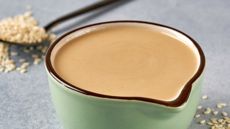 While dairy products like buttermilk and soft cheese are an ultimate dream pairing with tomatoes, there are nondairy alternatives that are just as creamy, and carry a similar mouthfeel. For instance, tahini, which is simply ground sesame seeds, is slightly nutty, sweet, and bitter but intensely creamy. There are many types of tahini, but we think raw, hulled tahini works best because it's both mild and smooth, without the intensity of flavor that roasted tahini carries. There's a reason that vegans use tahini in their cooking to mimic the density and creaminess of dairy products.
