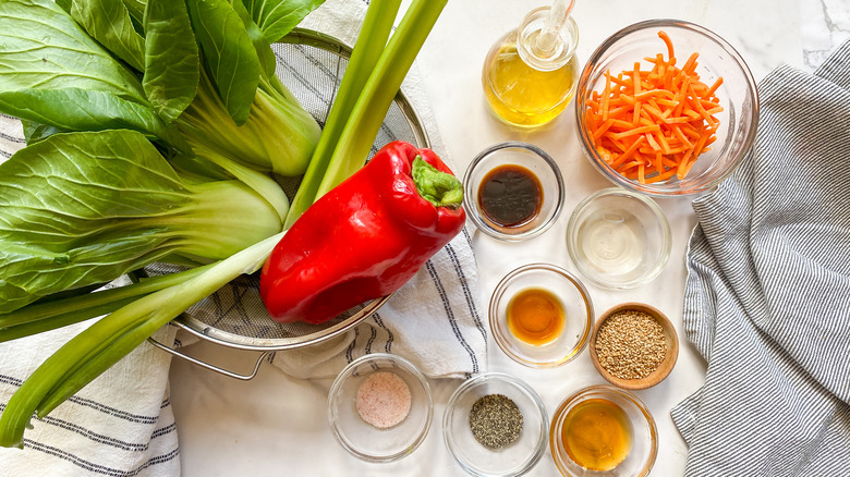 Gather the ingredients for crunchy bok choy salad