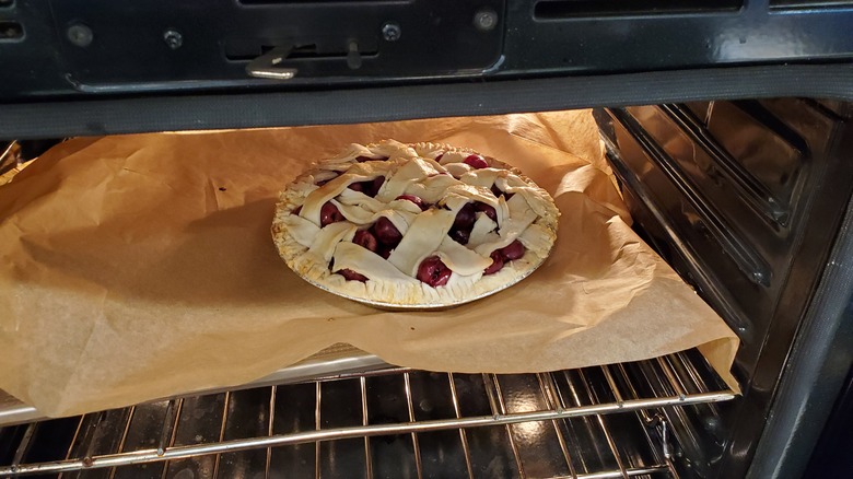 Once you've gotten to the baking step, you don't want to throw it all away by making a small blunder. You shouldn't rush baking pie because it's more difficult to tell if it's finished baking compared to cookies and towering sponge cakes. You can't look for rising or flattening — and sometimes, the color of your crust can be deceptive. Instead, you'll need to use your recipe to determine the perfect baking time and temperature for your dessert.
