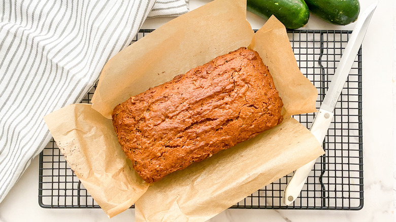 To make this recipe, you'll, of course, need zucchini. "A little goes a long way in terms of shredding zucchini, so you only need one, medium in size," Hahn shares.