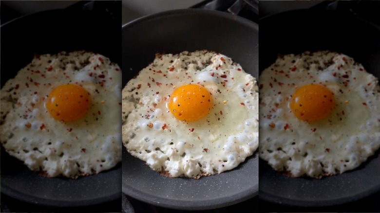 Viral recipes are always tricky, as they veer between genuinely useful and attention-grabbing stunts, but show us a simple new way to cook eggs that really works, and you'll have our attention. The best viral recipes aren't ones that utilize strange ingredients or produce Instagram-ready visuals. Like another feta favorite with baked pasta, good viral recipes blow your mind with normal ingredients being used in ways that make you wonder why you didn't think of it yourself. This feta fried egg trick is just like that; it's something you can make in a matter of minutes with equipment you already have and ingredients that are probably already in your fridge.