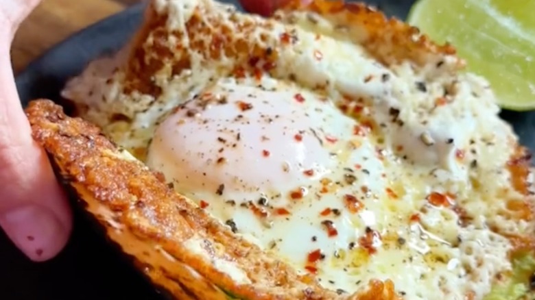 Coming from writer and recipe developer Grace Elkus on TikTok, these feta fried eggs have racked up over 30 million views for good reason. By crumbling a circle of feta cheese into a pan, Elkus creates a barrier that you can crack a single egg into. The pan is covered so that the top of the fried egg cooks evenly as the bottom browns. The feta melts and merges with some of the egg whites, creating a lacy, browned crust around an interior of soft egg and runny yolk. The feta has plenty of flavor by itself, so some black and red pepper are the only other things needed to turn out a crispy, salty, savory breakfast in minutes.