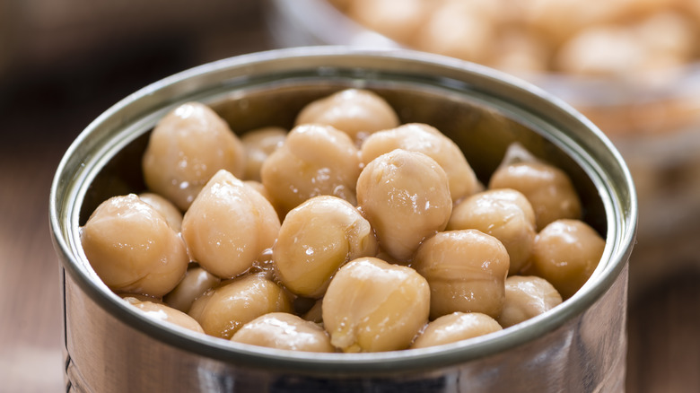 Finally, canned chickpeas provide you with another fantastic ingredient known as aquafaba. This is the name for the liquid in the can that's perfect for making vegan chocolate mousse and meringue. Aquafaba can also be used to make nougat, fudge, marshmallow fluff, and buttercream, so don't discard it. Set it aside in the fridge for later and use it to make a post-bean dessert course.