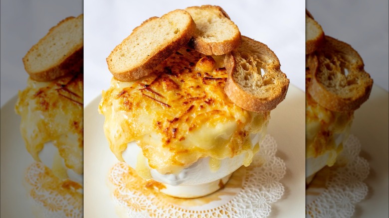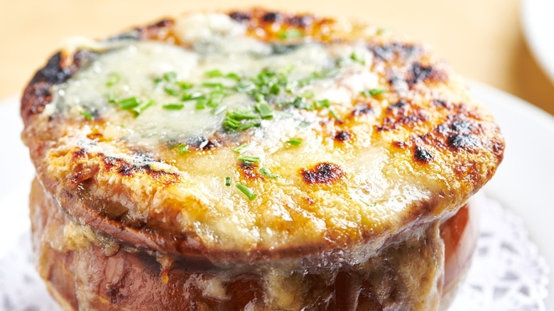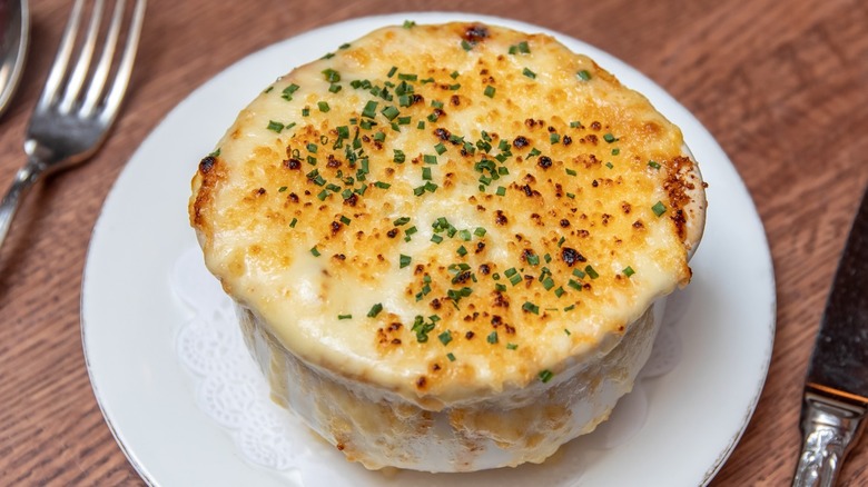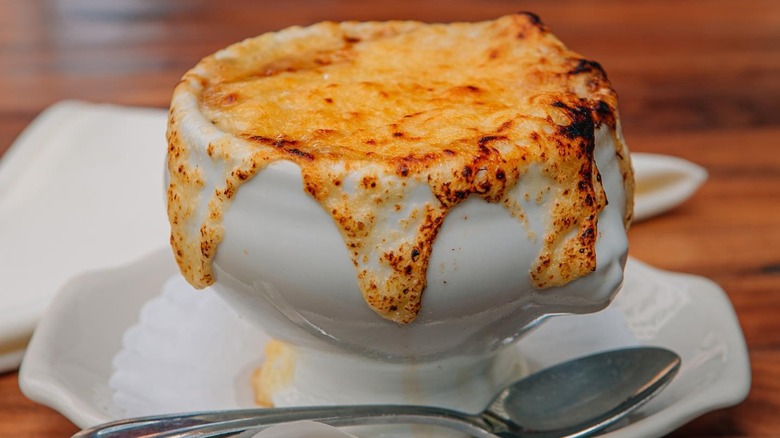 Soup is truly a universal food. Cuisines around the world have their unique varieties of warm and comforting broth-based concoctions, from ramen to Italian wedding soup. But nothing is quite as decadent and rich as a bowl of French onion soup (soupe à l'oignon gratinée as it is called in France). French onion soup recipes typically include a meat-based broth (traditionally beef) flavored with herbs, onions that have been caramelized in butter, croutons made from yesterday's bread, and topped with a layer of gruyère cheese. Often wine and sherry are also added.