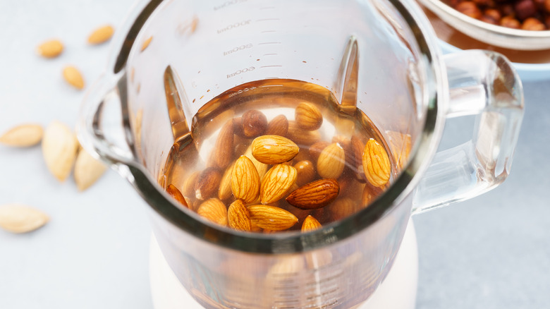 Two things to keep in mind: Raw almonds and unsweetened milk and almond butter are best for smoothies as they don't contain any oils, flavors, or seasonings that you may not want in your breakfast drink. And unless you own a super high-powered professional blender such as Vitamix, you'll want to think twice before putting whole nuts in the blender. Instead, soak the almonds first so they don't hurt your blade or burn out the motor of your machine.