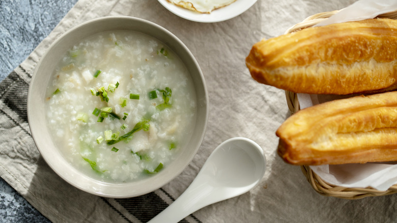You might not think of rice as a breakfast item, but in China and other Asian countries, it's a morning staple. Lots of different preparations exist, but none is more popular than congee, a savory rice porridge. The simplest recipes call for just three ingredients: rice, water, and salt. The rice is cooked over low heat for 45 minutes, or until it becomes thick and creamy.