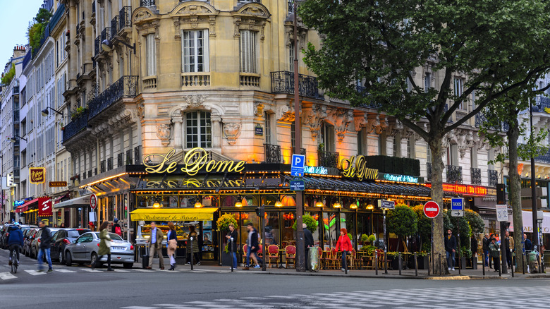 In 2021, friend and longtime editor Laurie Woolever compiled the posthumous book "World Travel: An Irreverent Guide" from old Bourdain interviews and previous writings, and the "Paris" section is nothing short of a travel Bible. One of the top-priority "must-sees" on his list was Le Dôme, a seafood restaurant to end all seafood restaurants. Bourdain visited the joint when he went to Paris for the first episode of his second series "No Reservations," humorously titled "Why the French Don't Suck." To step into Le Dôme is to enter the quintessential upscale French bistro of your dreams. The restaurant sits on the border of the 6th and 14th arrondissements; it's white linen tablecloths and classic Parisian sidewalk seating, all scored by jazz. As Bourdain put it, "It's an old classic — and I mean classic with a capital C — brasserie in the Montparnasse district."