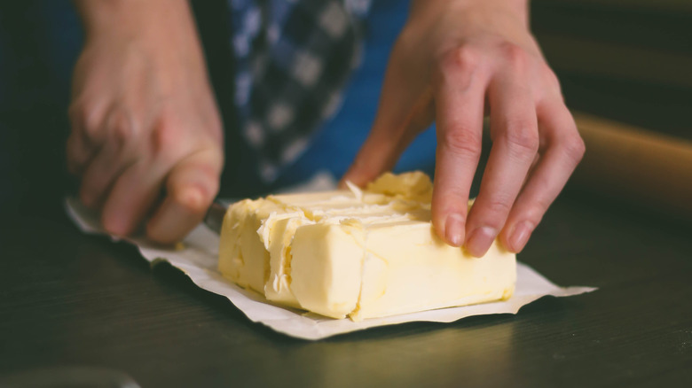European butter, like Kerrygold, does not have these notations. Typically, the packages are sold in 1 or 2-cup blocks. If you're working with these kinds of butter, always reference the package to determine the most accurate weight. You can also use a scale to measure your butter. Two sticks of butter (1 cup) weigh about 227 grams or 8 ounces. You should avoid using a measuring cup for your butter because its stick shape will never yield an accurate measurement.