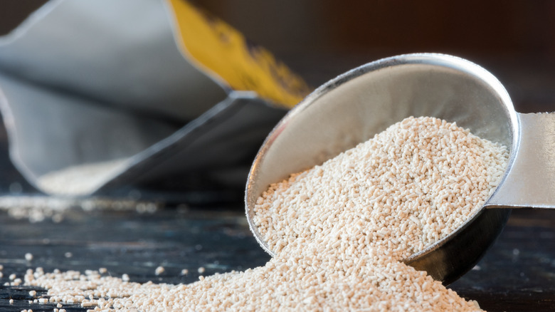 We can't underscore the importance of correctly measuring your yeast for bread making. One standard yeast packet holds about 2 ¼ teaspoons of yeast or about ¼ of an ounce. If your recipe requires less than a packet, or you're taking from a larger container, you should measure the granules like baking soda or baking powder. Since the particles are small, measuring using a scale is a wash.