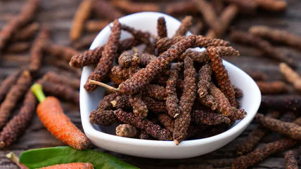 We're all familiar with Piper nigrum — the little black peppercorns we grind over, well, everything. Did you know that this spice has an even more venerable cousin, Piper longum (sometimes called pippali), commonly known as long pepper? They're both fruits that are dried and often ground for use as a spice; both contain the compound piperine, which gives them their gorgeous pungency. Long peppers, though, have a sweet baking-spice aroma, a more citrusy flavor than their cousin, and quite a bit more of a spicy kick. This makes them an excellent option for your next barbecue sauce or dry rub.