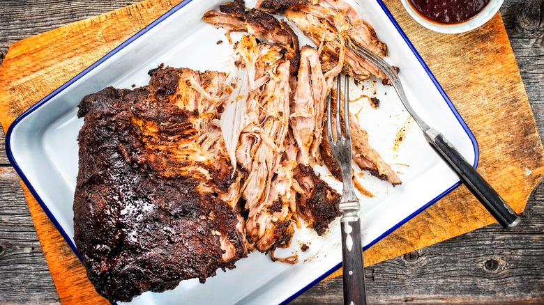 Now let's fire up the grill and contemplate long peppers. Generally, they should be substituted for black pepper in dry rubs and marinades. Since they're still used to make pickles in India, think about a dish that could use the long pepper's fiery astringency. We think a good start would be as part of a dry rub for an old-school Southern pork barbecue. Combine ground long peppers with brown sugar, Kosher salt, celery salt, garlic and onion powders, ground mustard, and paprika, then rub a generous amount of this seasoning mix over a Boston butt. Smoke low and slow over chunks of hickory wood until its internal temperature reaches 185 degrees Fahrenheit.